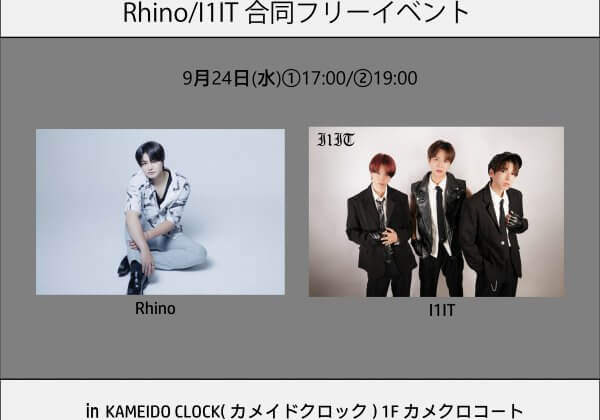 9/24(水)Rhino/I1IT 合同フリーイベントin有明ガーデン 開催決定!