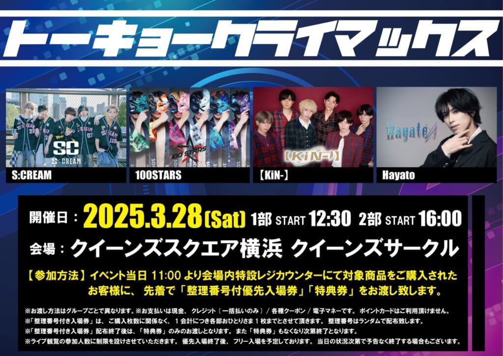 人気のダンス&ヴォーカルグループが多数出演する弊社企画で大好評のイベント「トーキョークライマックス」。