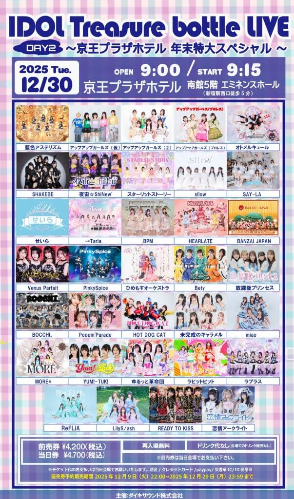 毎年恒例「IDOL Treasure bottle LIVE 年末特大スペシャル in 京王プラザホテル」今年も開催決定!