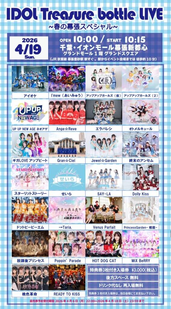 ※特典券3枚は当日出演の全グループにご使用頂けます。(当日限り有効)